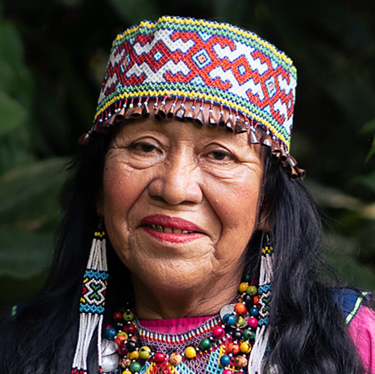Olinda comes from a respected lineage of healers and artists, her father being renowned healer, Victor Amaringo. She was immersed in the world of plants from a young age, and it was when she met and married her husband at the age of 24, that she had the call to learn how to heal.