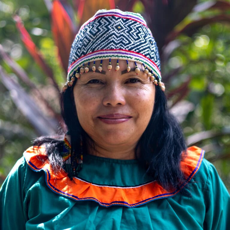 Inocencia’s Shipibo name is “Panshinbeka” meaning “the woman who brings the sun, or is born from the sun”.Inocencia comes from the Shipibo community of ‘Nueve de Octubre’. She has three girls of 20, 25, and 32 years old, and three grandchildren.